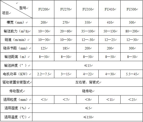 FU刮板輸送機(jī)型號(hào)參數(shù)